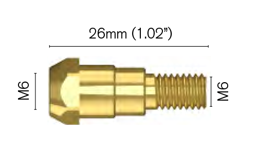 - Délka: 26 mm – tato délka určuje vzdálenost mezi připojením k hořáku a místem, kde se uchycuje kontaktní špička.