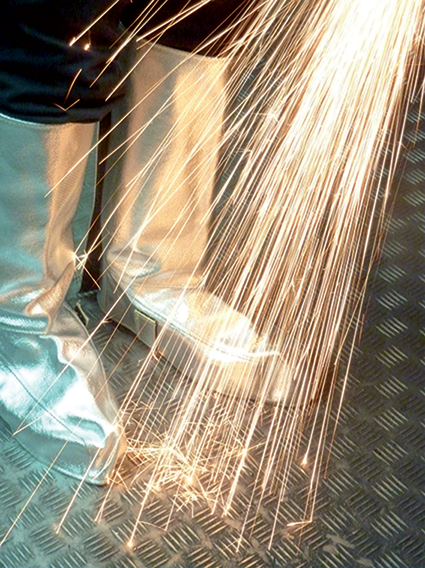 Pohliníkované ochranné kamaše JUTEC z preox-aramidové tkaniny s AL povlakem pro horké provozy do 1000oC