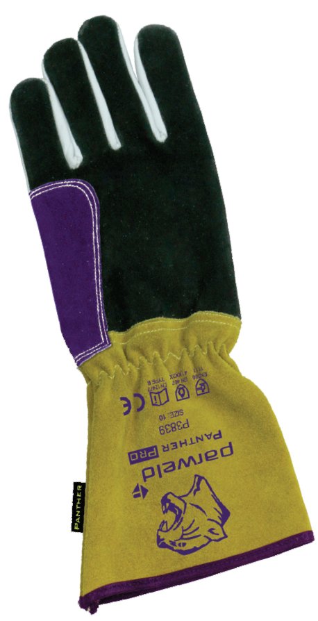 Rukavice Parweld Panther PRO TIG nabízející ochranu rukou před svařováním a průmyslovými aplikacemi. Vyrobeno z kozí kůže s manžetou a hřbetem z hovězí kůže.