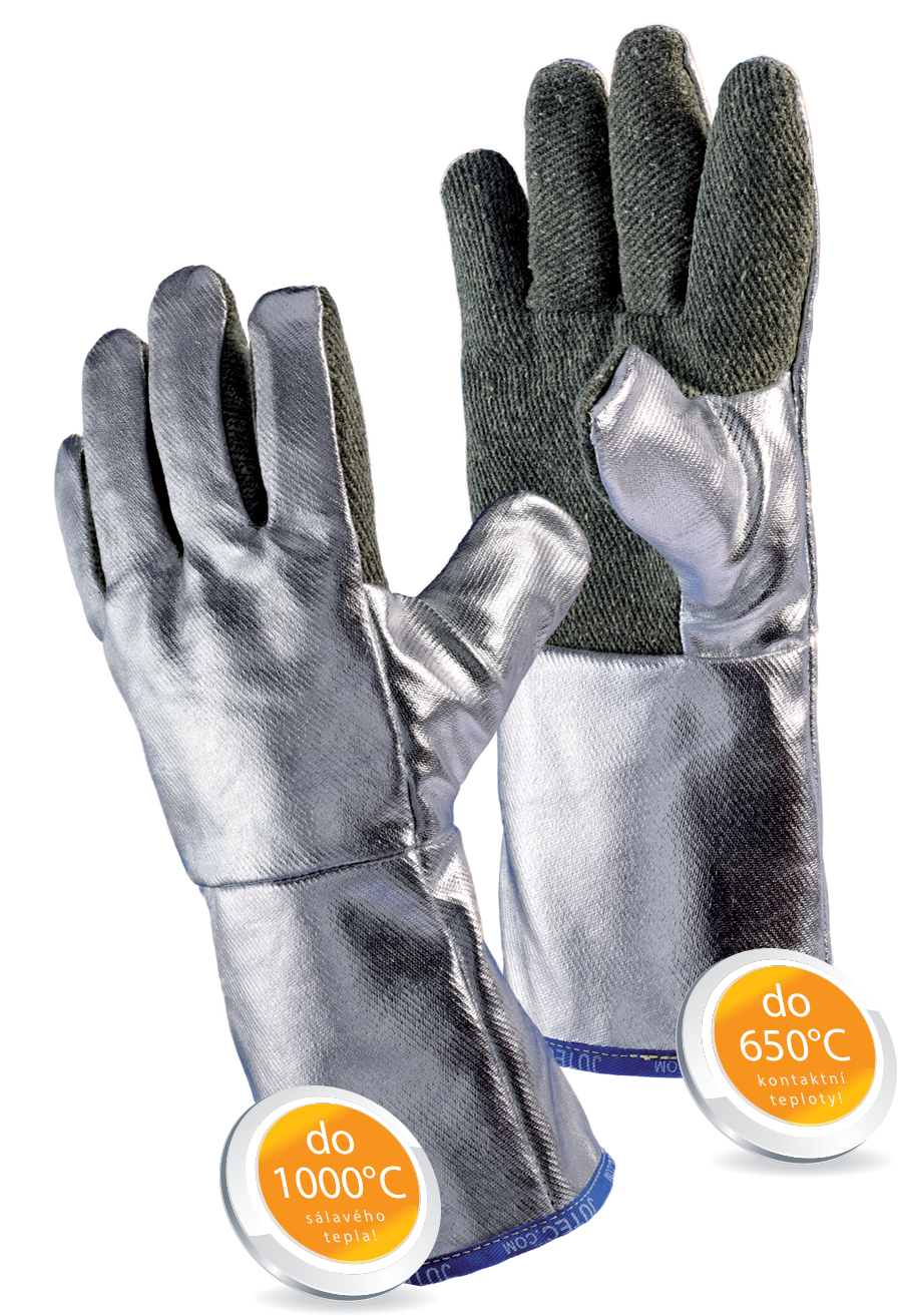 Hřbet ruky (Sálavé teplo): Díky hliníkovému napaření (pružný Al povlak) dokáže hřbet odrážet až 1000 °C sálavého tepla. To je klíčové při práci u pecí nebo při tavení kovů.